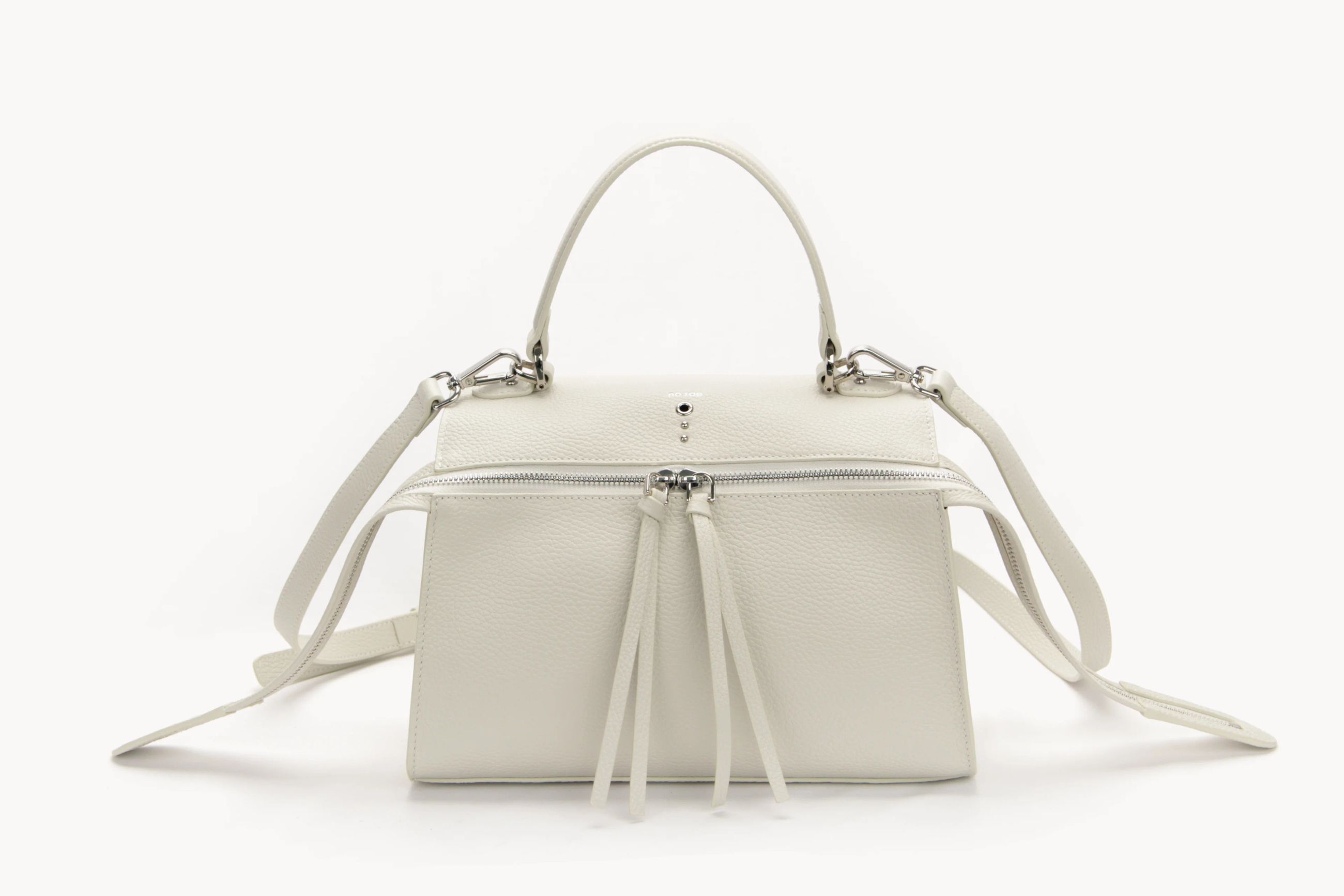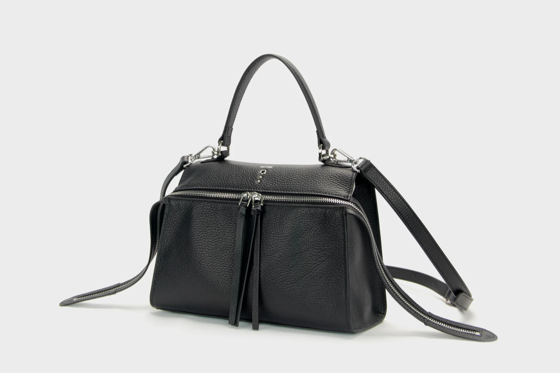 Strutturata, moderna e dal carattere deciso, la Metis è una medium hand bag realizzata in pelle dollaro, apprezzata per la sua grana elegante e resistente. La silhouette compatta ma capiente è valorizzata dalla zip frontale con tiralampo in pelle, dettaglio funzionale che diventa elemento distintivo di stile. Dotata di manico superiore e spalla removibile, offre versatilità d’uso, adattandosi con naturalezza sia a look professionali sia a outfit più casual-chic. Le dimensioni garantiscono spazio e organizzazione senza rinunciare a linee pulite e raffinate. Espressione del design italiano, è realizzata secondo rigorosi criteri di qualità e cura manifatturiera.